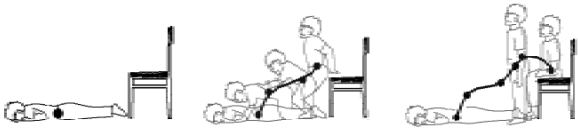 Ответ. В исходном положении ц.м. сидящего находится над стулом. Наклоняясь вперед, человек переносит ц.м. вперед, чтобы он оказался над находящимися перед стулом ступнями ног. После этого вертикальным усилием ног можно встать, поднимая ц.м. вверх. Если пытаться, отталкиваясь ногами вверх, подниматься без наклона вперед, возникает опрокидывающий назад момент сил.