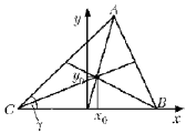 AD и BE – медианы, O – точка пересечения медиан, т.е. ц.м., AF – высота, опущенная из вершины A на сторону CB (ось x).