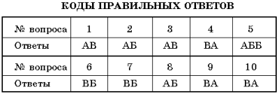 Коды правильных ответов